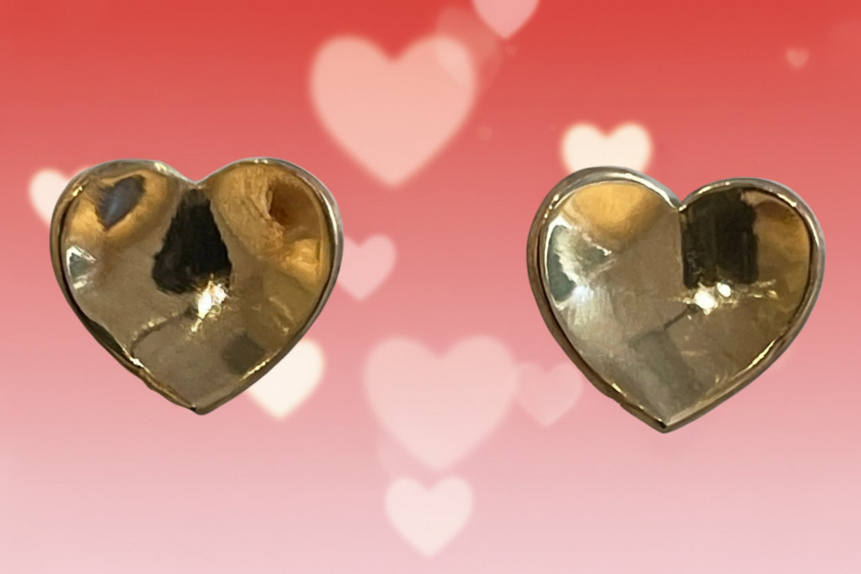 Cute little brass hearts domed out, sterling post and earnut, measures 12mm. Handmade in Las Cruces, NM