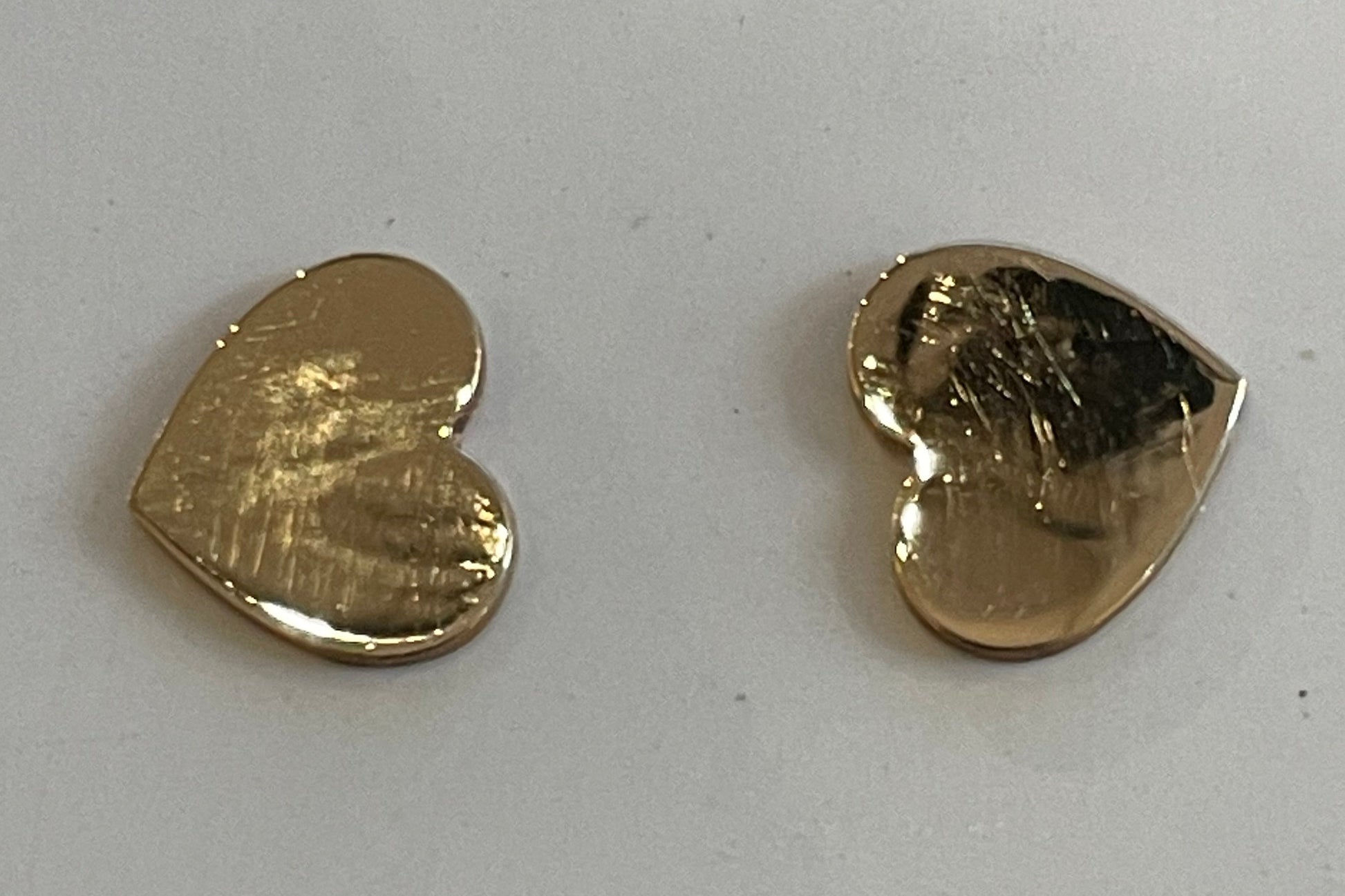 Cute little brass hearts, sterling post and earnut, measures 12mm. Handmade in Las Cruces, NM